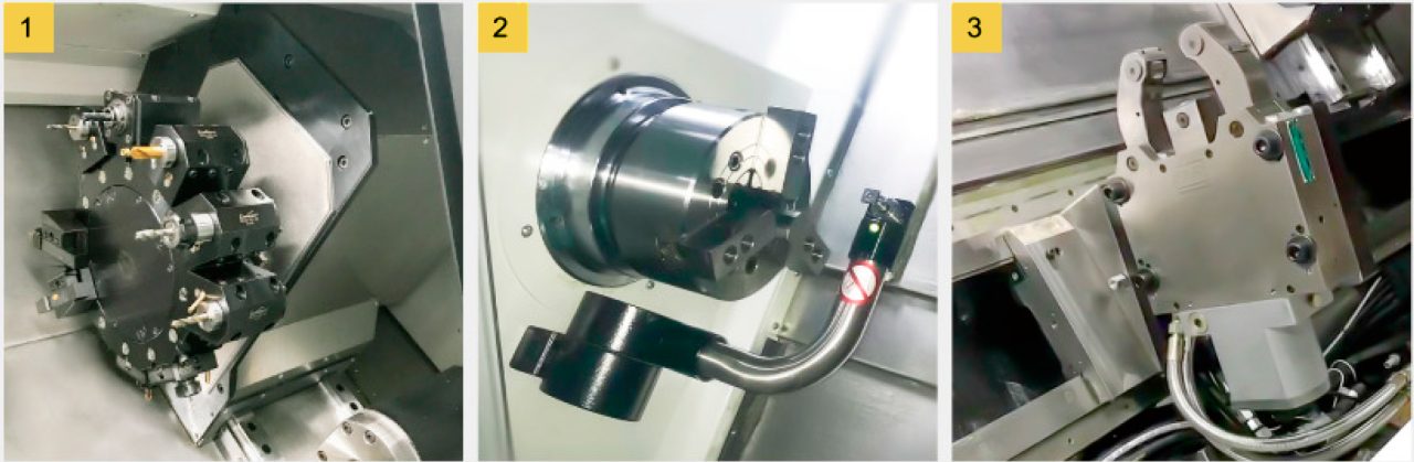 Для заказчиков доступен богатый выбор опций: серворевольверная головка, револьверная головка с приводным инструментом, повышенная мощность или крутящий момент шпинделя, увеличенный диаметр гидроцилиндра и патрона, охлаждающая система с выдвижным баком, щуп для настройки инструмента, сепаратор масляного тумана и другие.